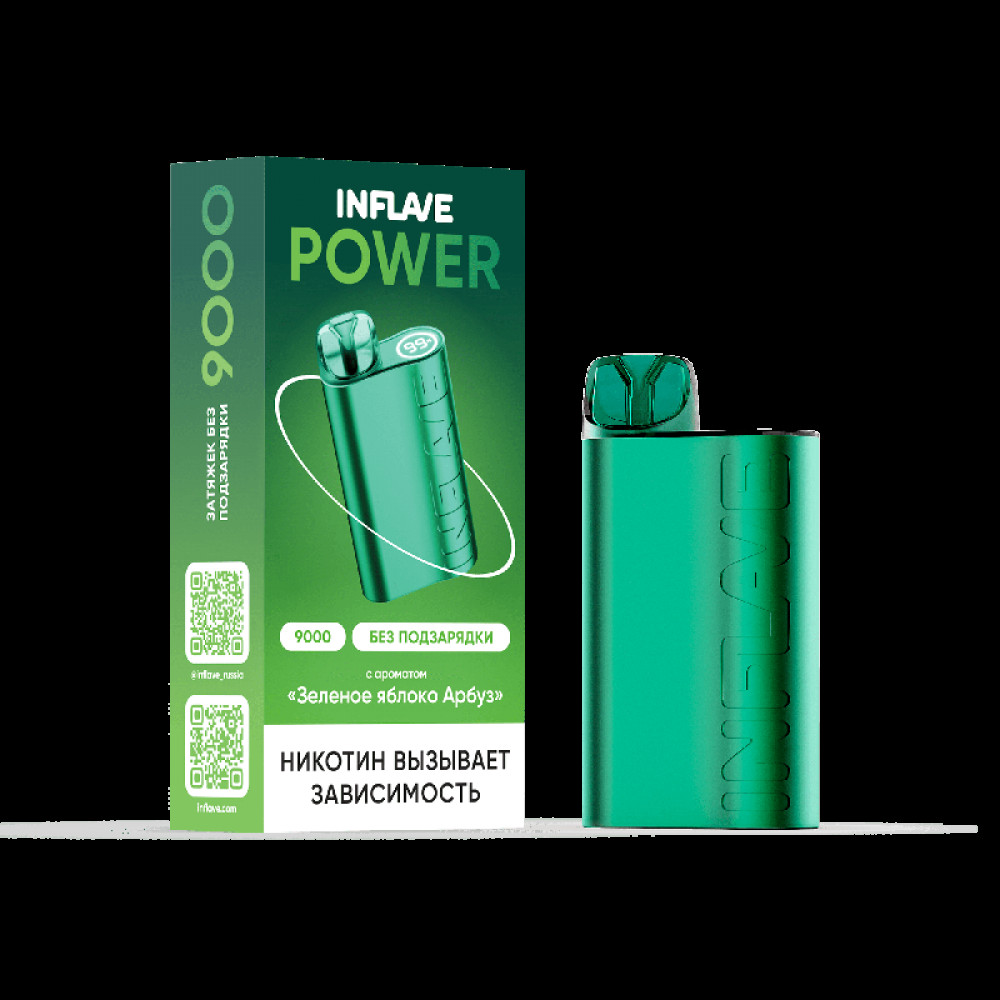 Электронная сигарета INFLAVE POWER 9000 затяжек Зеленое Яблоко Арбуз - купить в Якутске