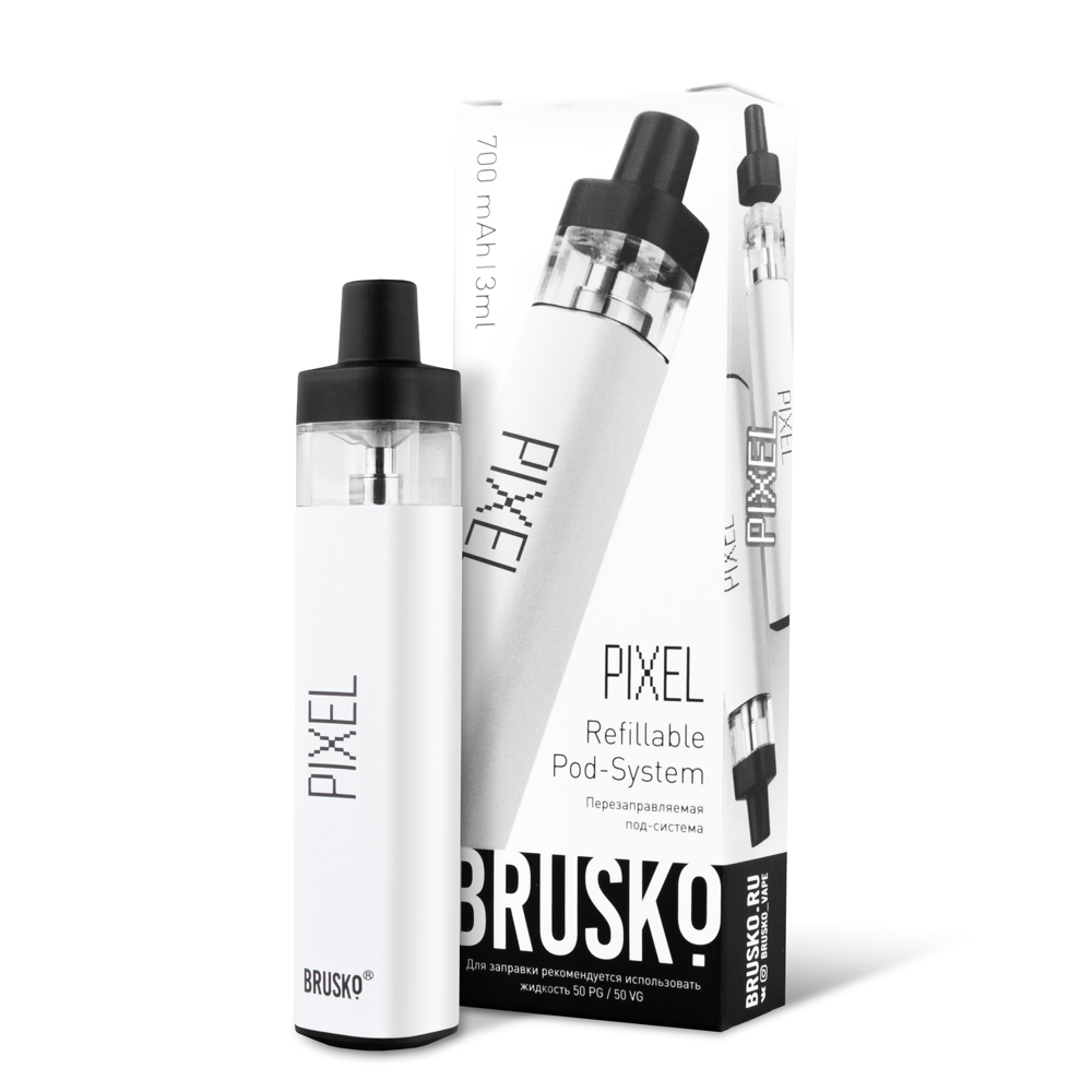 Перезаправляемая Под-Система Бруско Пиксель (Brusko Pixel) 700 mah, Белый - купить в Якутске